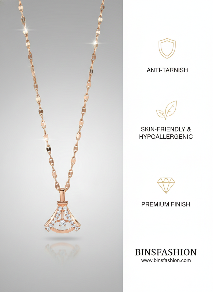 Add a touch of modern elegance to your jewellery collection with the Elegant Crystal Arch Pendant Necklace. Designed with a unique arch-shaped pendant, this necklace is beautifully accented with sparkling crystals and a subtle centerpiece detail that enhances its charm.
