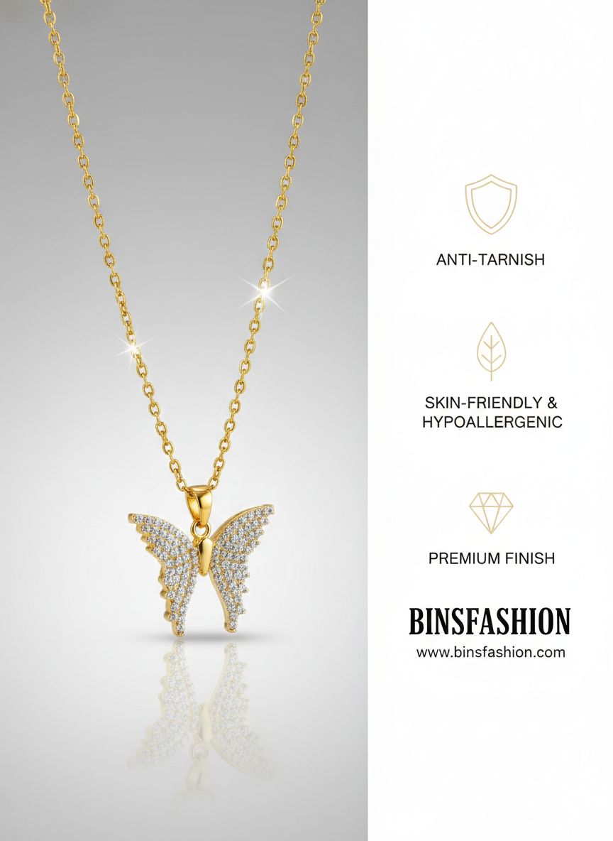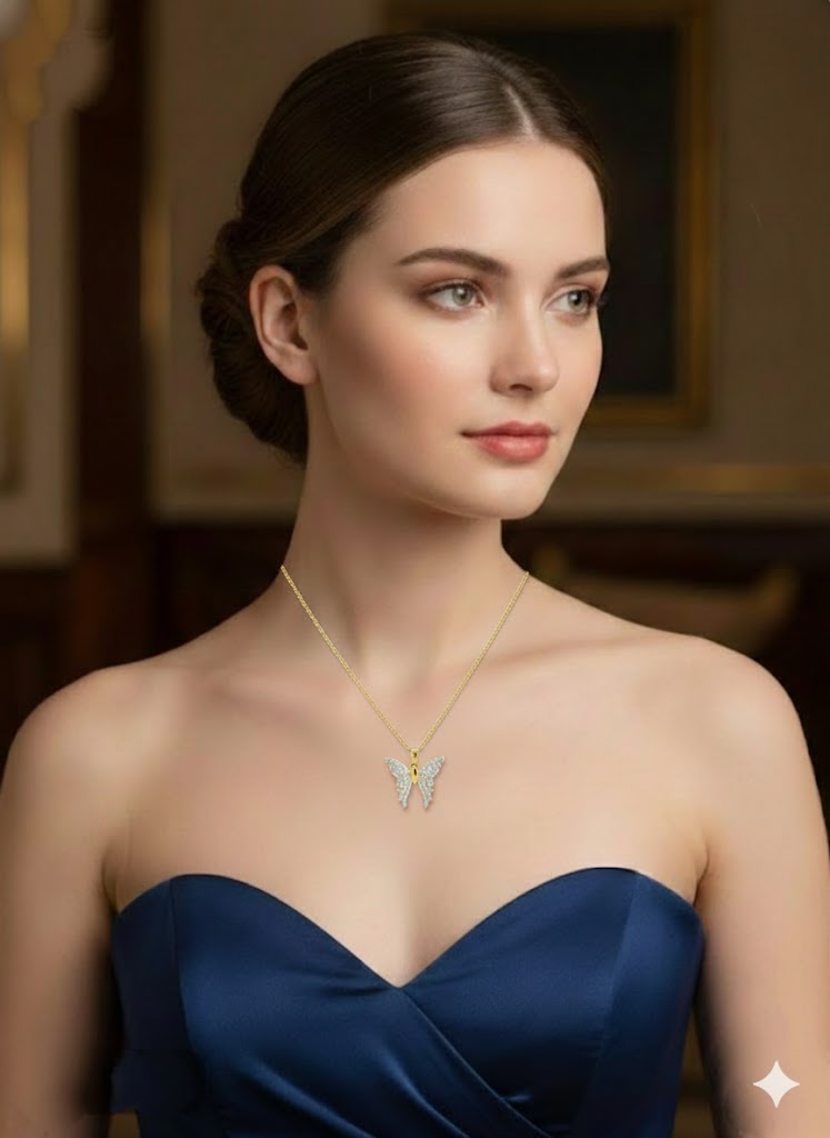 Add a touch of elegance and charm to your look with this beautifully crafted butterfly pendant necklace. Designed with sparkling crystal stones and a premium gold finish chain, this necklace symbolizes freedom, grace, and beauty. Perfect for daily wear as well as special occasions, it complements both western and ethnic outfits effortlessly.