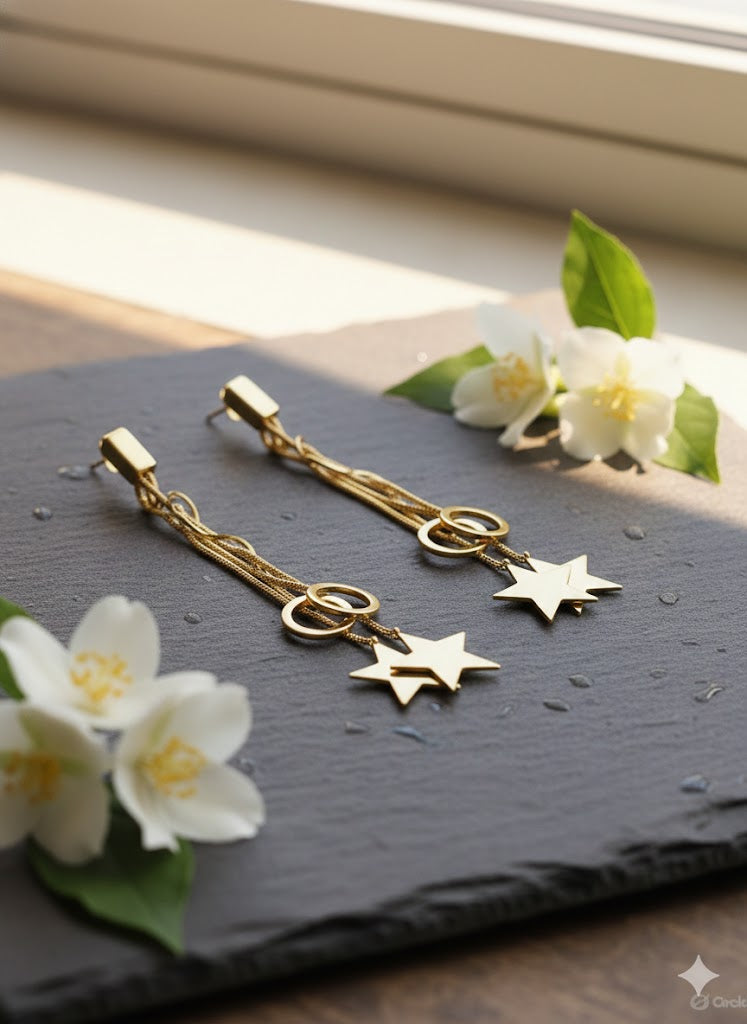 1. 1 Pair Earrings – Long gold star drop earrings