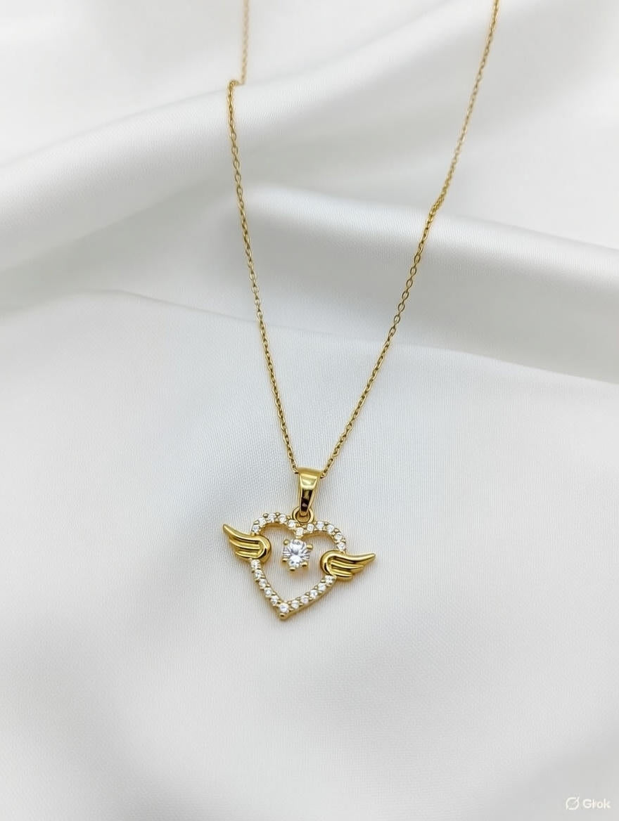 Celebrate love and protection with the Angel Wing Heart Crystal Pendant Necklace. Designed with a delicate heart-shaped frame, this pendant is beautifully adorned with sparkling crystals and elegant wing details on both sides, symbolizing care, freedom, and eternal love. A shimmering crystal centerpiece adds a luxurious finishing touch.