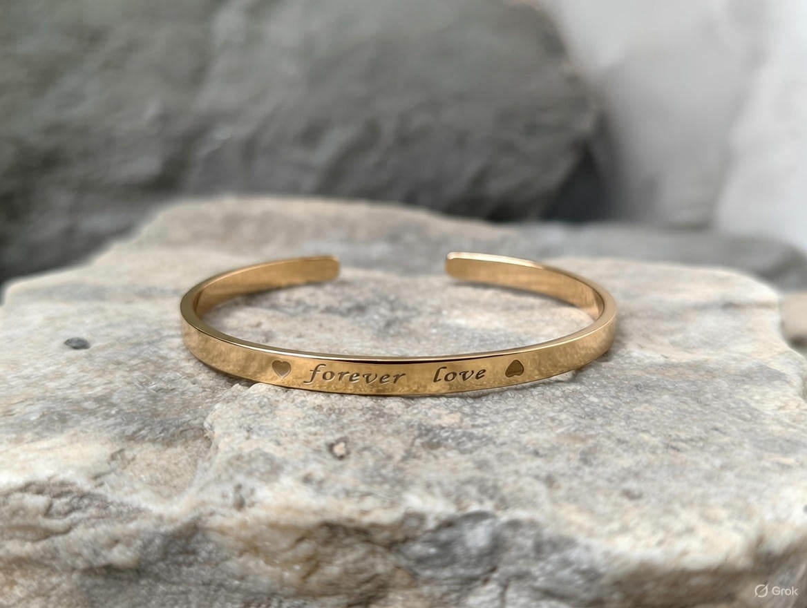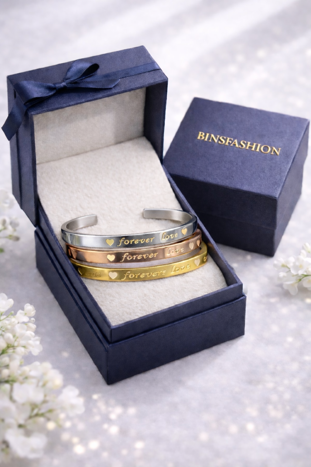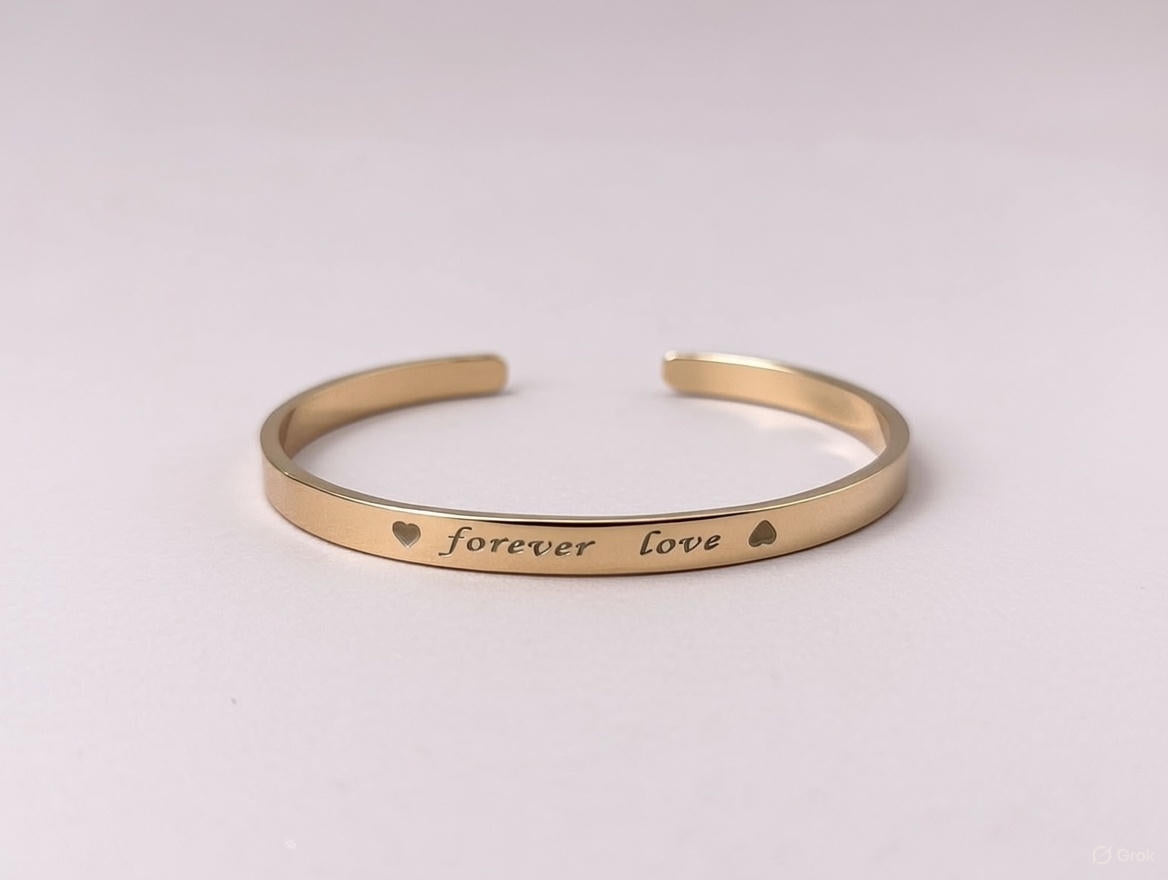 Express your feelings with the Forever Love Engraved Cuff Bracelet, beautifully designed with a minimalist open-cuff style and engraved “forever love” text accented with heart symbols. This bracelet blends simplicity with emotional value, making it perfect for everyday wear or meaningful gifting.