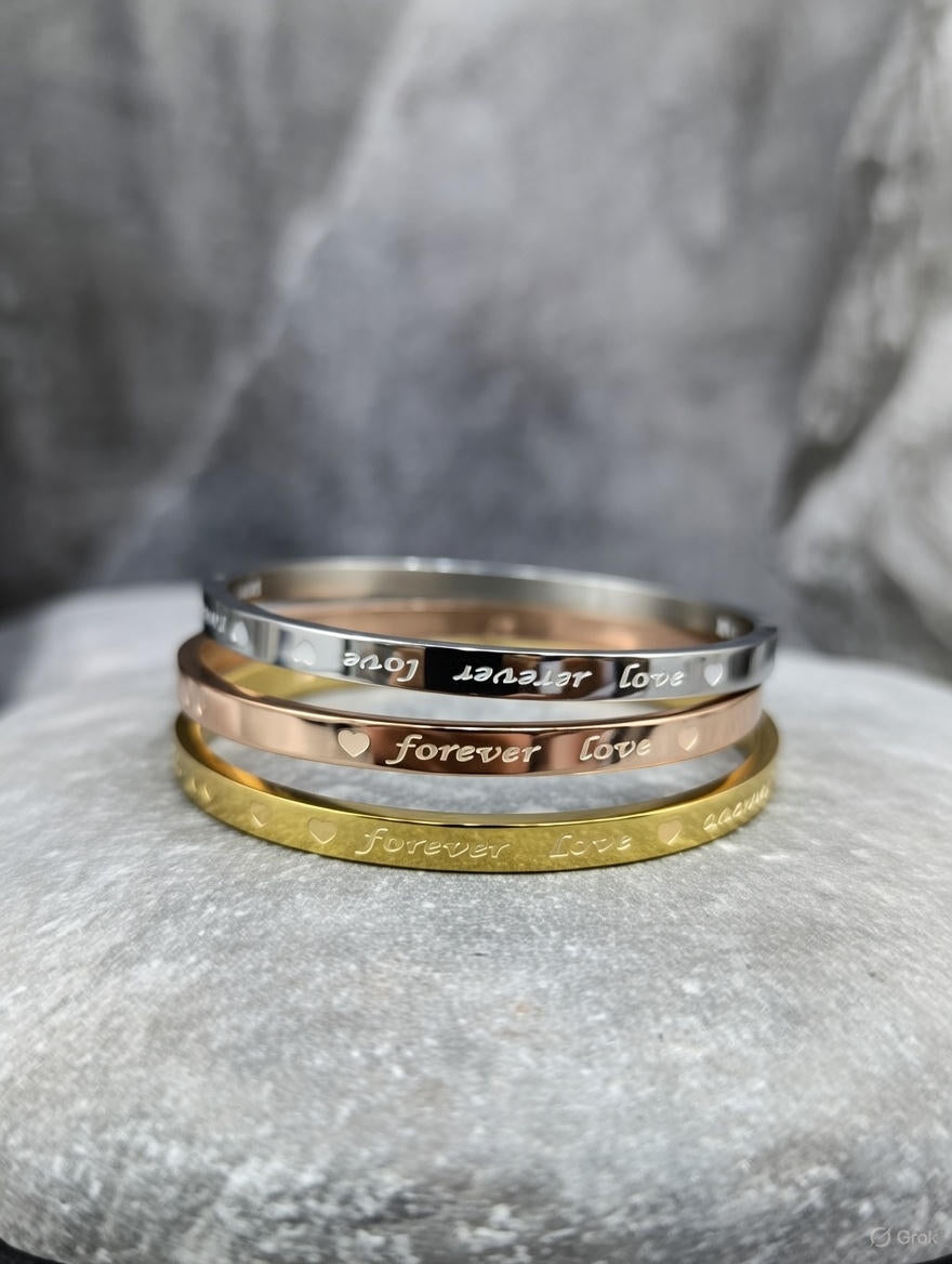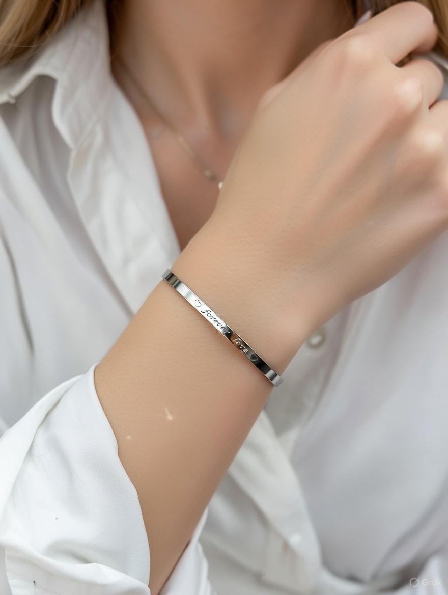 A timeless engraved bracelet that speaks love — available in elegant gold and silver finishes.