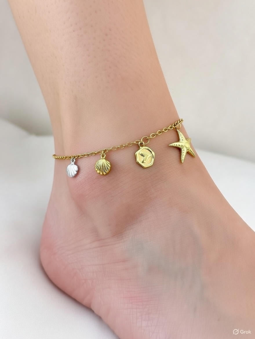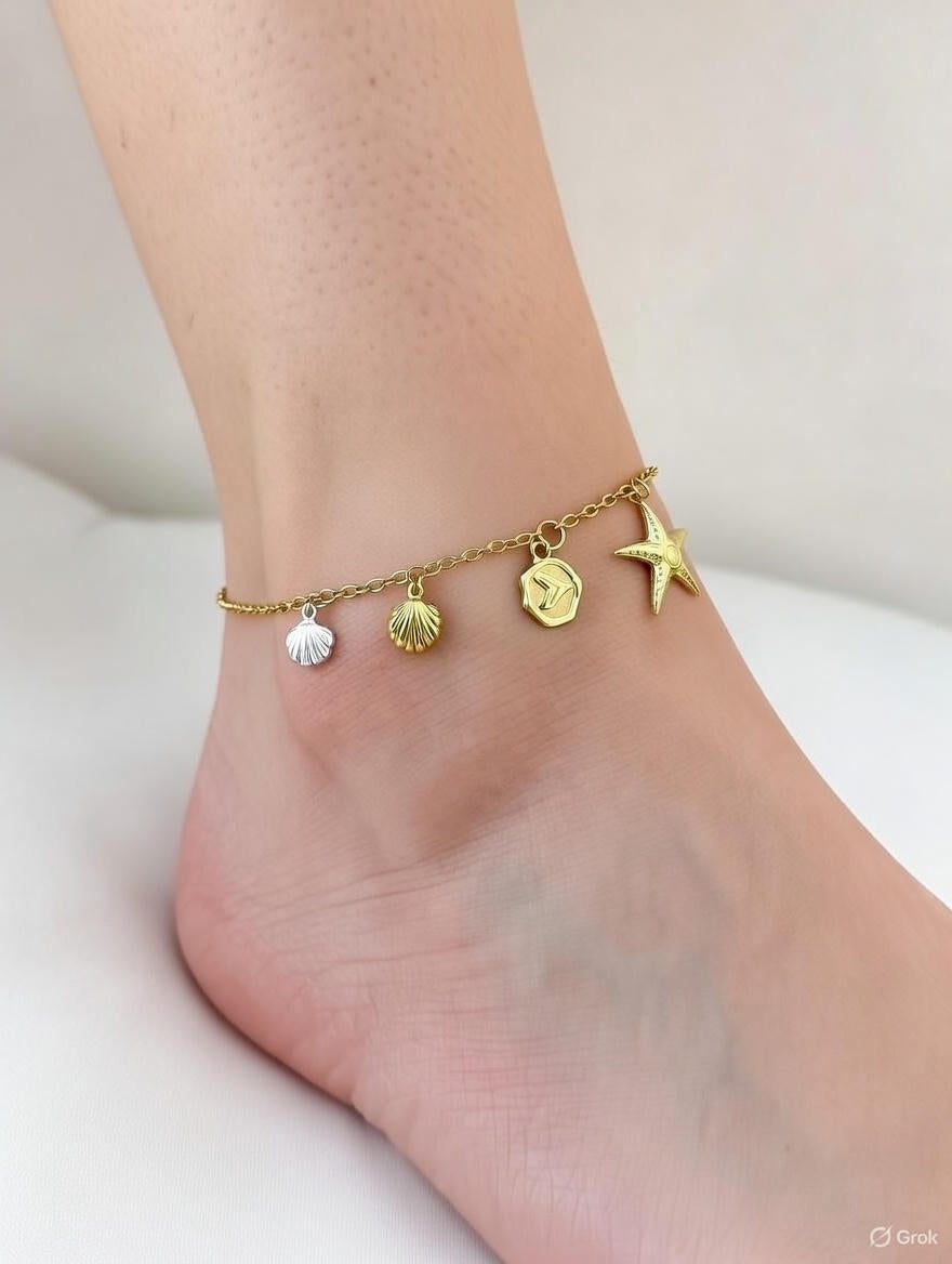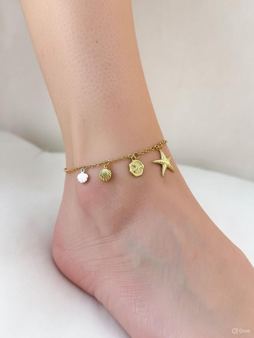 Sea Shell & Starfish Charm Anklet for Women Adjustable