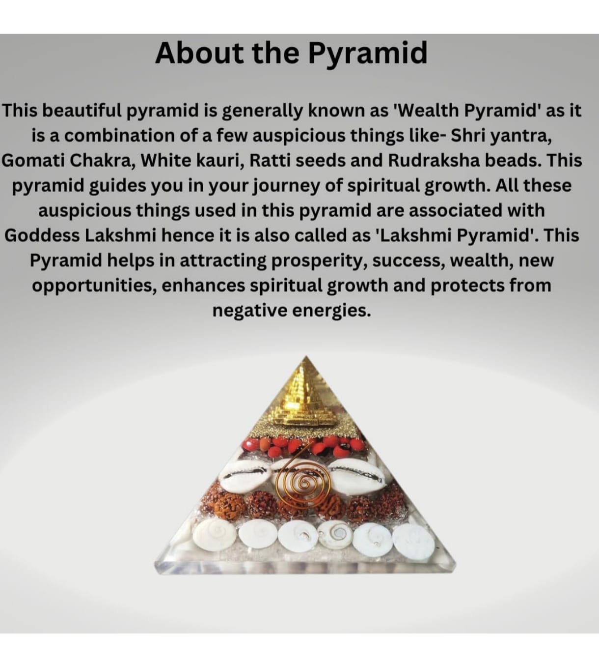 Lakshmi Vastu Pyramid Harness the ancient principles of Vastu Shastra with this carefully crafted Lakshmi pyramid, designed to attract prosperity and abundance into your space. Positioned according to Vastu guidelines, this pyramid channels positive energy and aligns your environment with principles of wealth and well-being. The geometric form amplifies spiritual vibrations, making it an ideal addition to your home altar, office desk, or meditation corner. A meaningful investment in creating a harmonious, fortune-filled living space rooted in traditional wisdom.